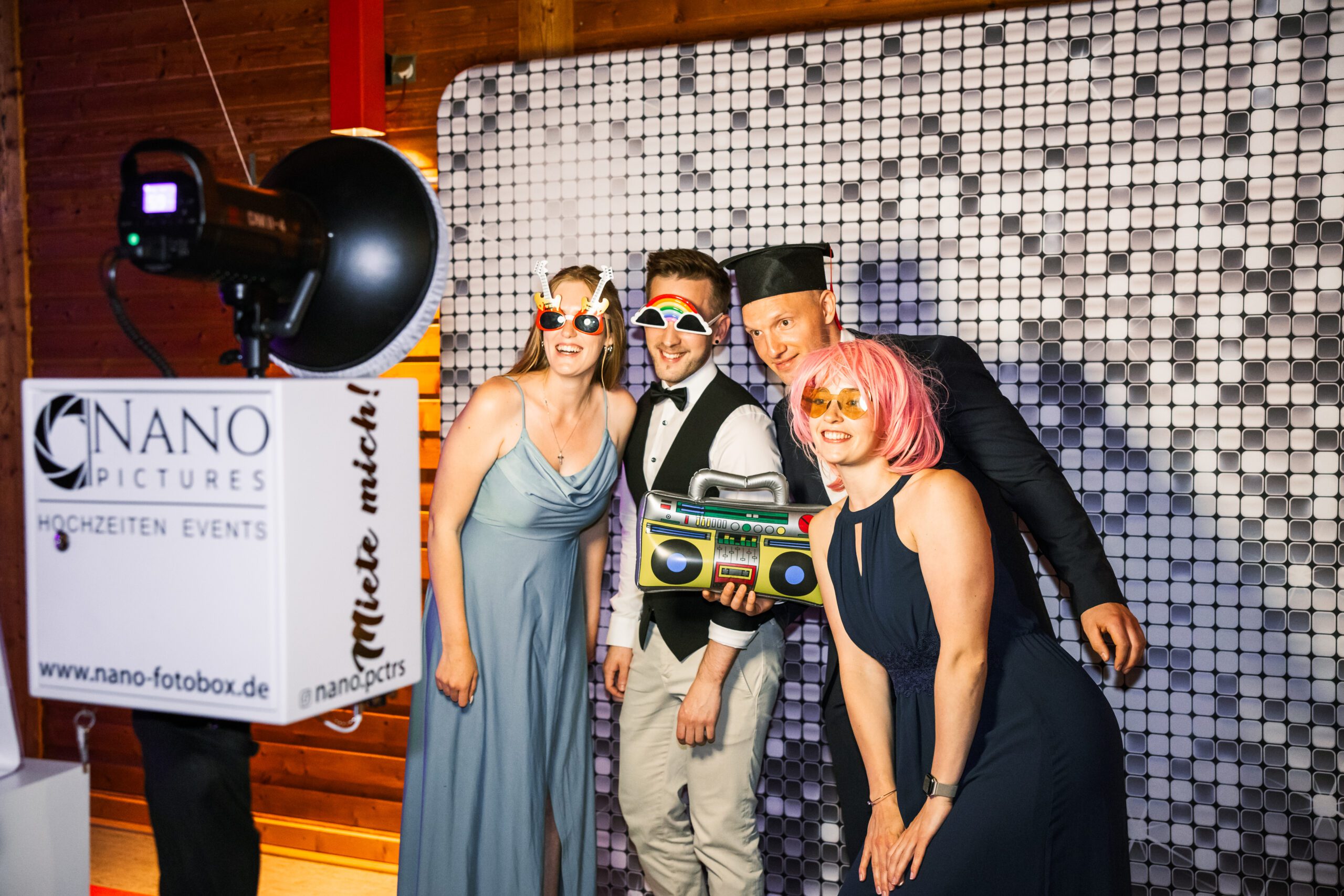 Willkommen bei Nano-Fotobox! Bei uns kannst du deine Fotobox mieten – in Marburg und Umgebung. Egal ob Hochzeit, Firmenfeier, Geburtstag oder Party – unsere Fotoboxen sind der perfekte Spaßgarant für jedes Event. Mit uns sicherst Du Dir unvergessliche Erinnerungen und einzigartige Bilder, die lange Freude bereiten. Unsere Fotoboxen sind einfach zu bedienen und sorgen für Unterhaltung und Lachen bei Deinen Gästen. Miete jetzt eine Fotobox und mach Dein Event zu einem unvergesslichen Erlebnis!